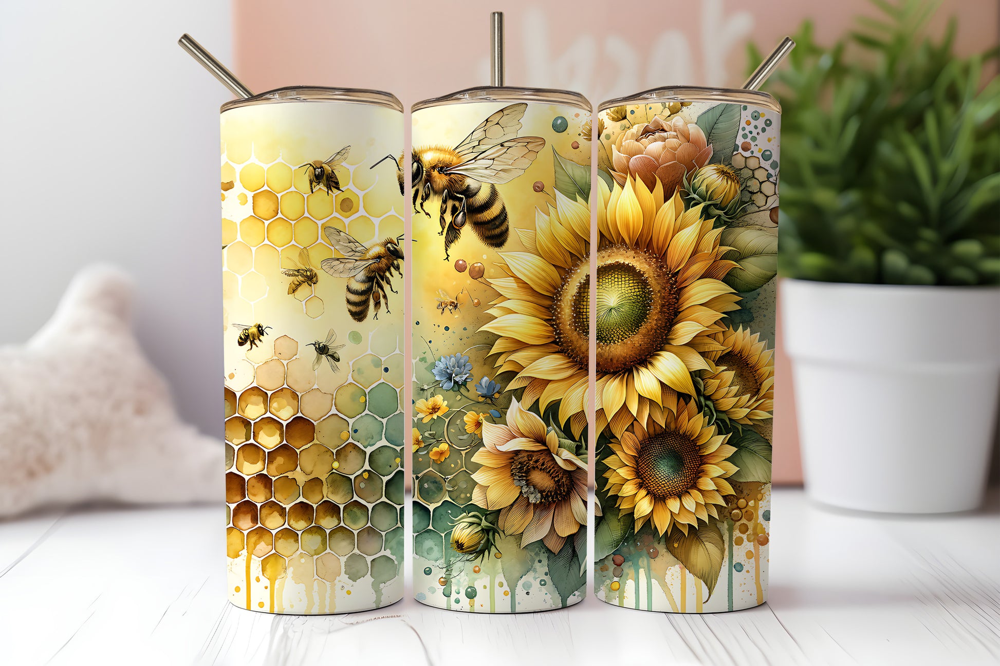 Bees And Sunflowers - 20oz Printed Straight Tumbler